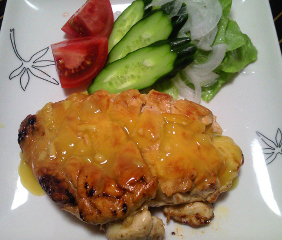 オレンジのソースがかかってる鶏肉。これもやばい。